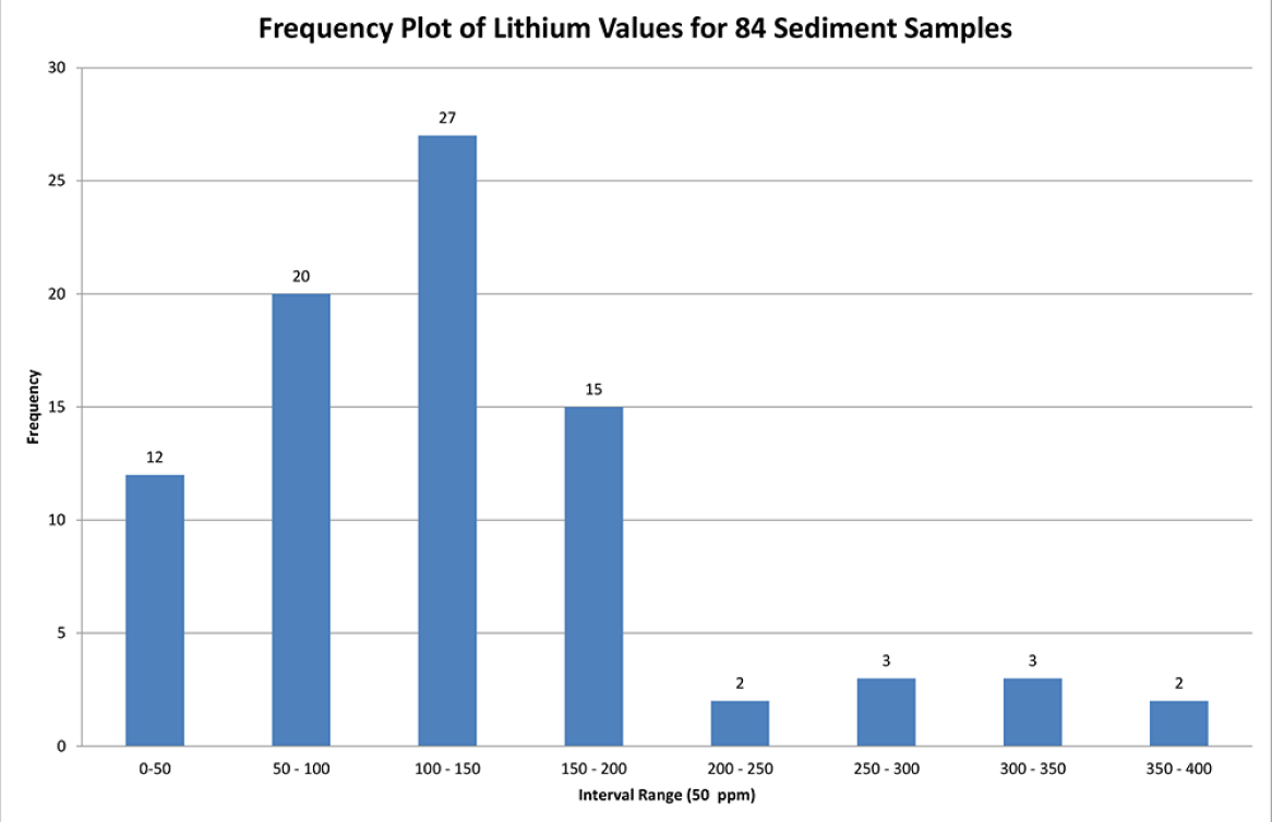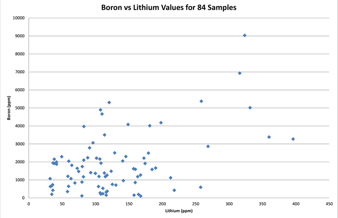The results were encouraging with values ranging up to 310 ppm Lithium and 8,600 ppm Boron and demonstrate an area in the north east contains sediments high in Lithium. Sediment analysis was carried out by Western Environmental Testing Laboratories (Wetlabs), Sparks, Nevada. These results, combined with earlier auger results show that a large area of the shallow subsurface of the marsh contain high levels of Lithium.