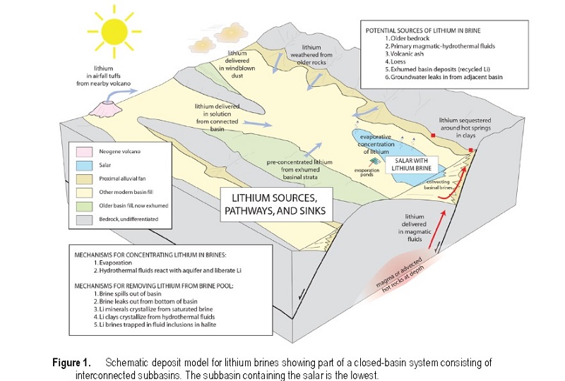 Lithium concentrations are likely in the form of clays including Smectite (possibly with Hectorite, a Lithium bearing clay) and Searlesite (a Sodium Boron Lithium bearing mineral). This investigation was carried out by the Geothermal Research Group, University of Utah in Salt Lake City.